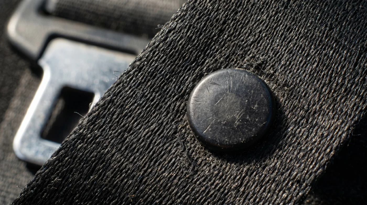 Invece, si tratta di un banale quanto geniale limite meccanico. La sua unica, vitale missione è mantenere la fibbia metallica alla perfetta altezza di presa ergonomica. Senza questa microscopica barriera fisica, il pesante gancio d’acciaio scivolerebbe inesorabilmente lungo il nastro obliquo fino a toccare il pavimento. Immagina la scena: ogni volta che entri in auto, saresti costretto a infilare goffamente la mano tra il fianco del sedile e il pannello della portiera, in una logorante ricerca alla cieca.