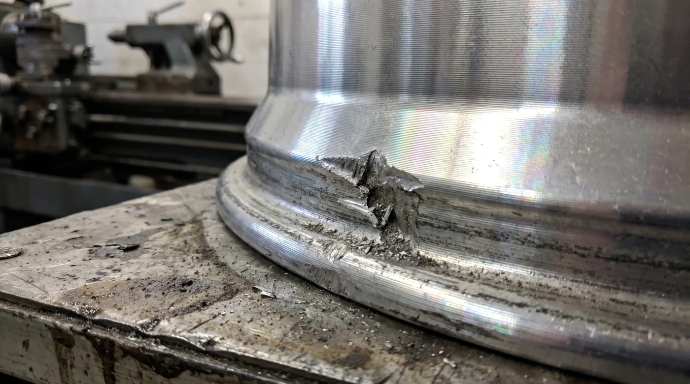 Cercare di effettuare un ritocco locale significa scontrarsi con la geometria perfetta della lavorazione originale. Il limite strutturale di questa tecnica è proprio la sua natura continua. Se provi a stuccare e lucidare solo cinque centimetri di bordo, spezzi la rifrazione della luce in modo irreparabile. L’unico modo per ripristinare il metallo ferito è rimettere l’intero cerchio sul tornio e procedere a una sfacciatura completa, asportando un nuovo strato di decimi di millimetro da tutta la superficie frontale.