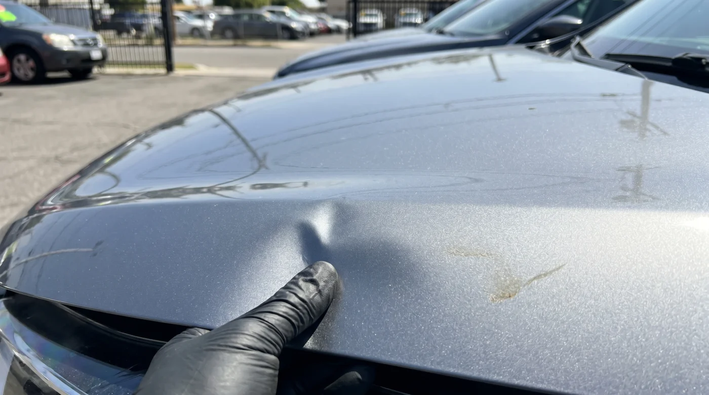 Un leggero scricchiolio metallico rompe la calma del momento. Sotto la pressione delle tue mani, la sottile lamiera ha ceduto impercettibilmente, creando una piccola concavità che il venditore noterà non appena la luce colpirà l’angolo giusto. Hai appena ammaccato un pannello in alluminio progettato per flettersi, senza ottenere alcuna vera risposta sulla salute dell’avantreno.