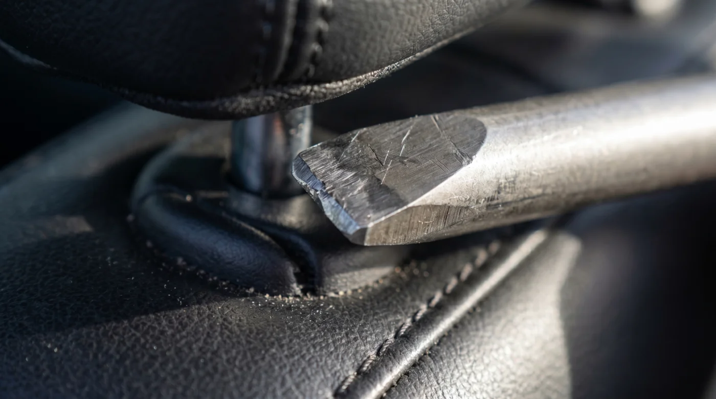 Il vetro temperato dei finestrini laterali è progettato specificamente per sopportare impatti diffusi, salvaguardando i passeggeri durante le collisioni laterali senza cedere. Tuttavia, questa superficie formidabile nasconde una vulnerabilità fatale contro una pressione microscopica ed estremamente focalizzata. I montanti del poggiatesta sono sagomati geometricamente per far esplodere il vetro temperato, agendo non come una mazza, ma come la punta di diamante di un trapano ad altissima precisione.