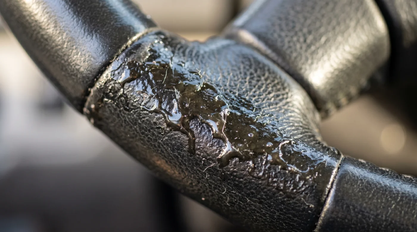 È un sabato mattina di metà aprile. Il sole scalda la carrozzeria e tu hai appena finito di lavare la tua auto. L’abitacolo profuma di pulito, i tappetini sono perfetti e il cruscotto brilla di quella luce sintetica tipica degli spray da supermercato. Ti siedi al posto di guida, afferri la corona per fare manovra e improvvisamente percepisci una sensazione sgradevole: i palmi faticano a scivolare.