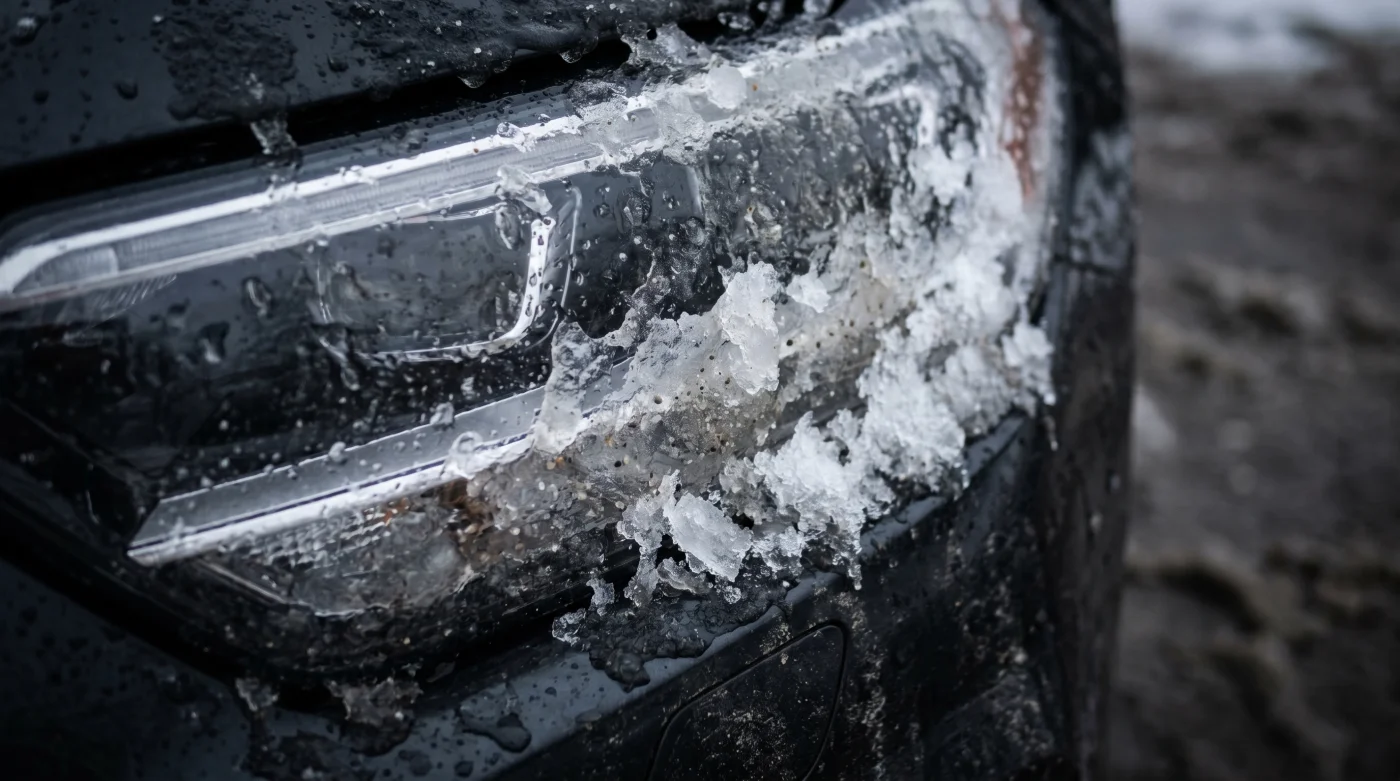 Chi trascorre ore in autostrada sotto il nevischio scopre un ulteriore ostacolo. Il mix di neve e sale sparato dai mezzi pesanti si asciuga rapidamente sulla plastica gelata, e senza calore per scioglierlo si forma una patina opaca che dimezza l’intensità luminosa in pochi chilometri.