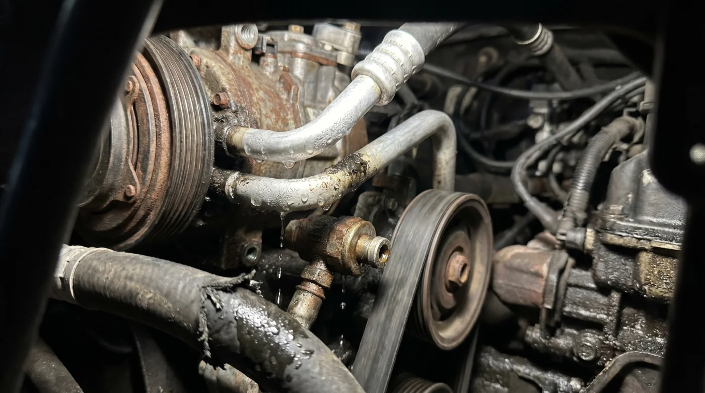 Il compressore, che è il cuore meccanico dell’intero apparato, si trova a dover faticare immensamente per asciugare questa aria densa e satura, incapace di staccare la frizione magnetica per riposare. Dovrebbe semplicemente pescare aria fresca e secca dall’esterno, ma tu gli hai chiuso la porta in faccia. Il motore deve quindi bruciare carburante extra per mantenere in funzione un componente sotto stress continuo.