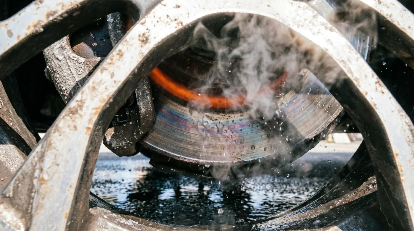 Quello che accade dietro le razze del cerchione è una reazione fisica brutale. I tuoi freni a disco hanno appena lavorato duro per chilometri, assorbendo energia cinetica e trasformandola in un calore che può superare facilmente i quattrocento gradi centigradi. Sono letteralmente roventi.