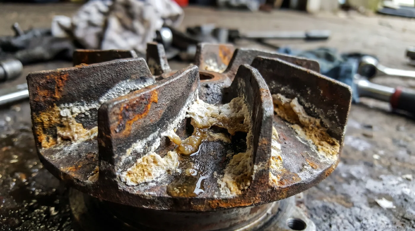 Il bersaglio preferito e più vulnerabile di questi sedimenti sono le giranti della pompa dell’acqua. Queste delicate alette di metallo o di composito plastico, progettate per spingere decine di litri di fluido al minuto con una precisione micrometrica, vengono letteralmente mangiate dal calcare o bloccate dalla massa bianca che si forma attorno all’alberino. La pompa perde efficienza, sforza, e alla fine cede.
